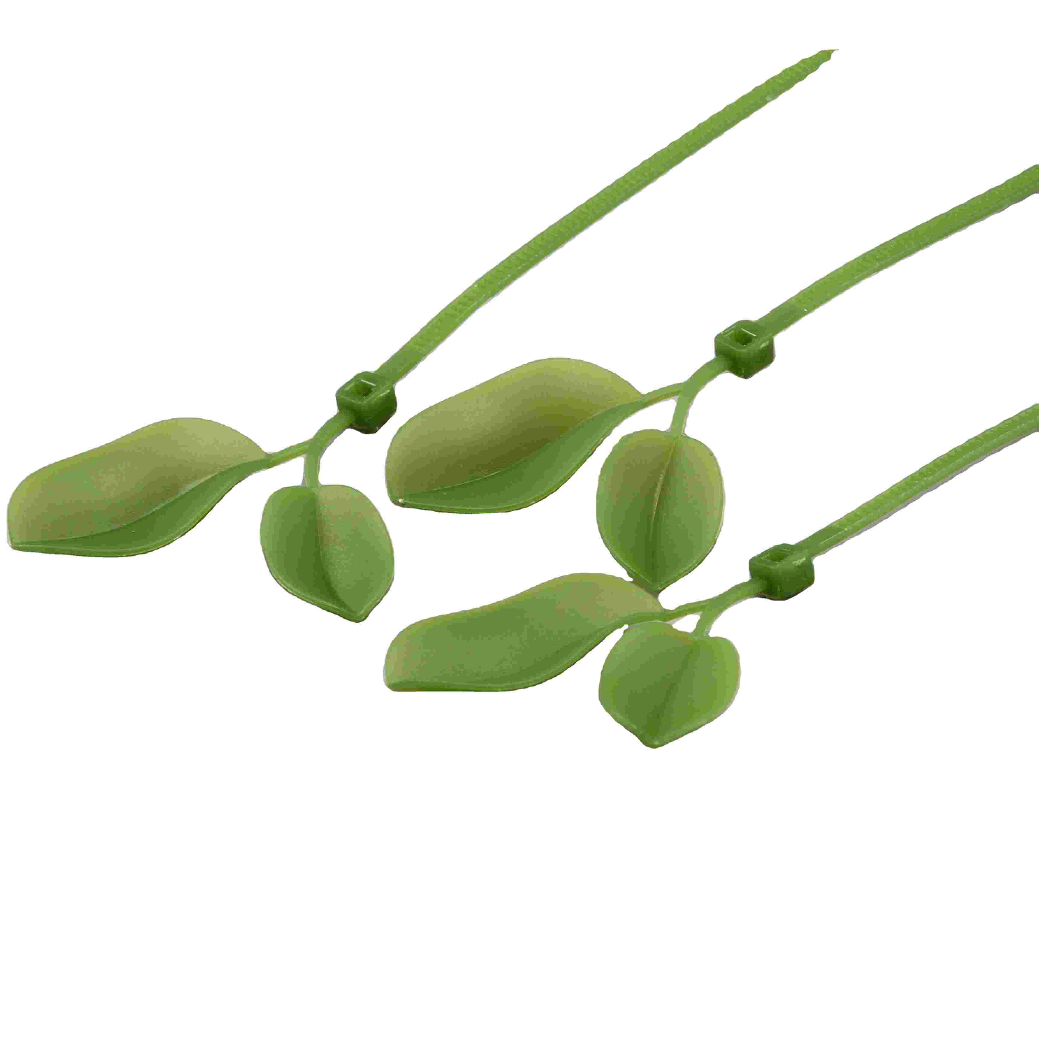 Reka bentuk daun yang unik dari ikatan kabel ini memberikan penampilan semulajadi yang menggabungkan dengan lancar dengan tumbuhan, menjadikan mereka pilihan pilihan untuk hortikultur dan landskap. Mereka sesuai untuk digunakan dalam aplikasi seperti mengamankan anak pokok muda, loji latihan untuk berkembang ke arah tertentu, dan cawangan sokongan yang mungkin terlalu berat.